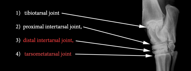 "If positive, it indicates a problem within the hock joint anywhere from the tibio-tarsal articulation down to the tarso-metatarsal articulation. It is not a spavin test such as the hock flexion test. The hock flexion test, at least for me, is almost useless in the diagnosis of lameness because a positive test can mean anything from trochanteric bursitis to sesamoiditis. It can be used as an aid in cases were a horse is not visibly lame. Then when the test is applied to each side of the horse it may help decide which hind leg is involved."