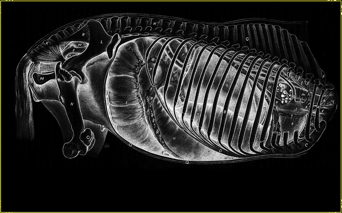 What are the serious fatal sides to all of this? In the case of stomach distention, one can eventually have a rupture of the stomach with death. Likewise ruptures can occur in the small and large intestines, too. One can have what we call a "twisted gut". This is a strangulation of the intestine which causes a blockage of the blood flow. It is generally believed that if the colicky horse is allowed to violently roll and thrash on the stall floor, a strangulated intestine may result. This is why grooms memorial have walked affected horses incessantlyto keep the animal from rolling in discomfort. Strangulation of the intestines is fatal in most cases when left untreated.
